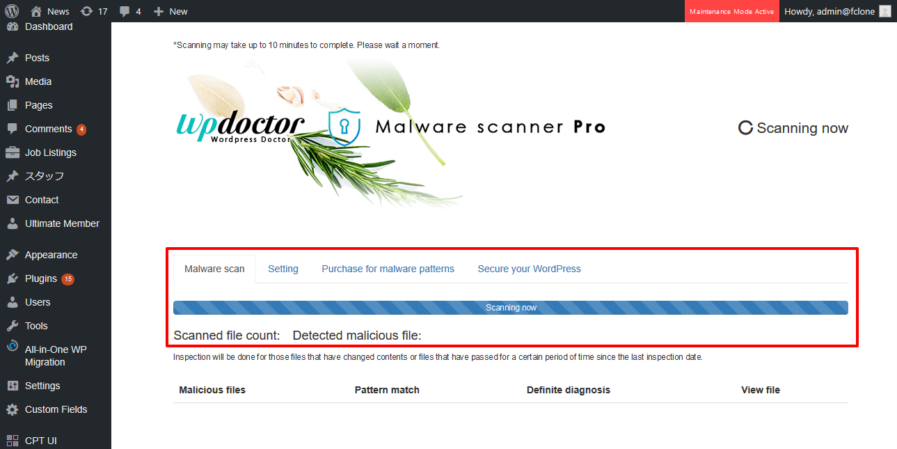 Het programma krijgt de nieuwste malware patronen, die elke dag toenemen via de cloud server van WordPress Doctor, en scant WordPress bestanden en database volledig van binnenuit om bestanden die door hackers zijn gemanipuleerd te onderzoeken en op te sporen.